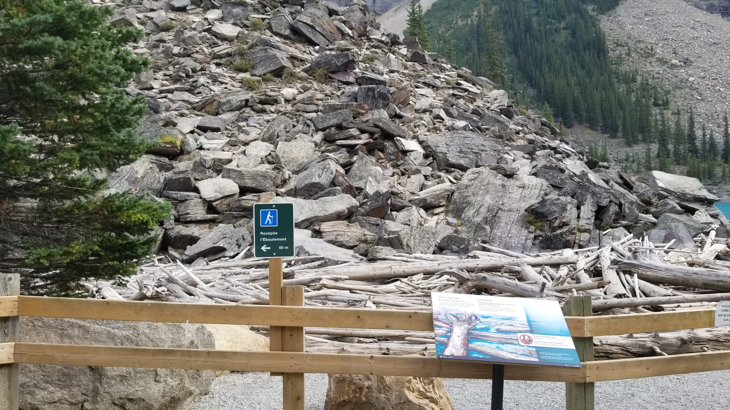 이 언덕 위로 약 800미터 올라가는 락파일 트레일 Rockpile Trail은 다소 가파르기는 하지만 어렵지 않게 오를 수 있다. 이 위로 올라가면, 만일 오르지 않았다면 너무도 후회할 모레인 레이크의 멋진 경치를 볼 수 있다.