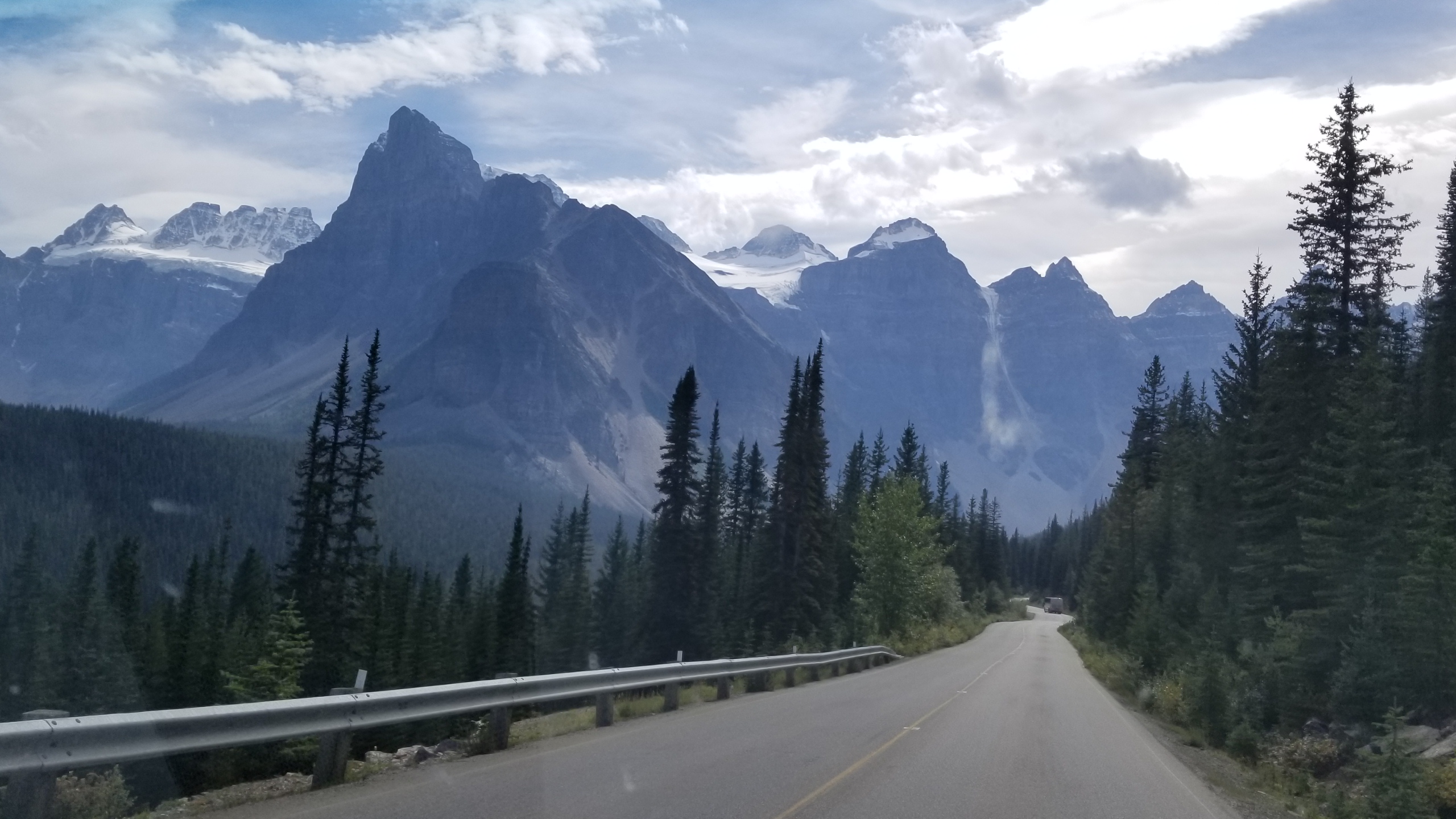 캠프장에서 딱 4.5 킬로 떨어져 천천히 가도 십분도 안 걸릴 거 같은 레이크 루이스를 들어갈 수가 없었다. 길에 차들이 그득하고 주차장은 이미 만원이라 돌아나오는 길도 만만치 않을 지경이었다. 주말, 그것도 노동절 연휴 주말이었슴을 간과했던 거다. 겨우 차를 돌려 모레인 레이크 Moraine Lake를 먼저 가기로 했으나 도중에 좌회전을 막고 있어 다시 레이크 루이스 주차장 입구 까지 한바퀴 돌아 내려오다 잠시 우회전을 허용하는 틈을 타 겨우 모레인 호수 가는 길로 들어설 수 있었다.