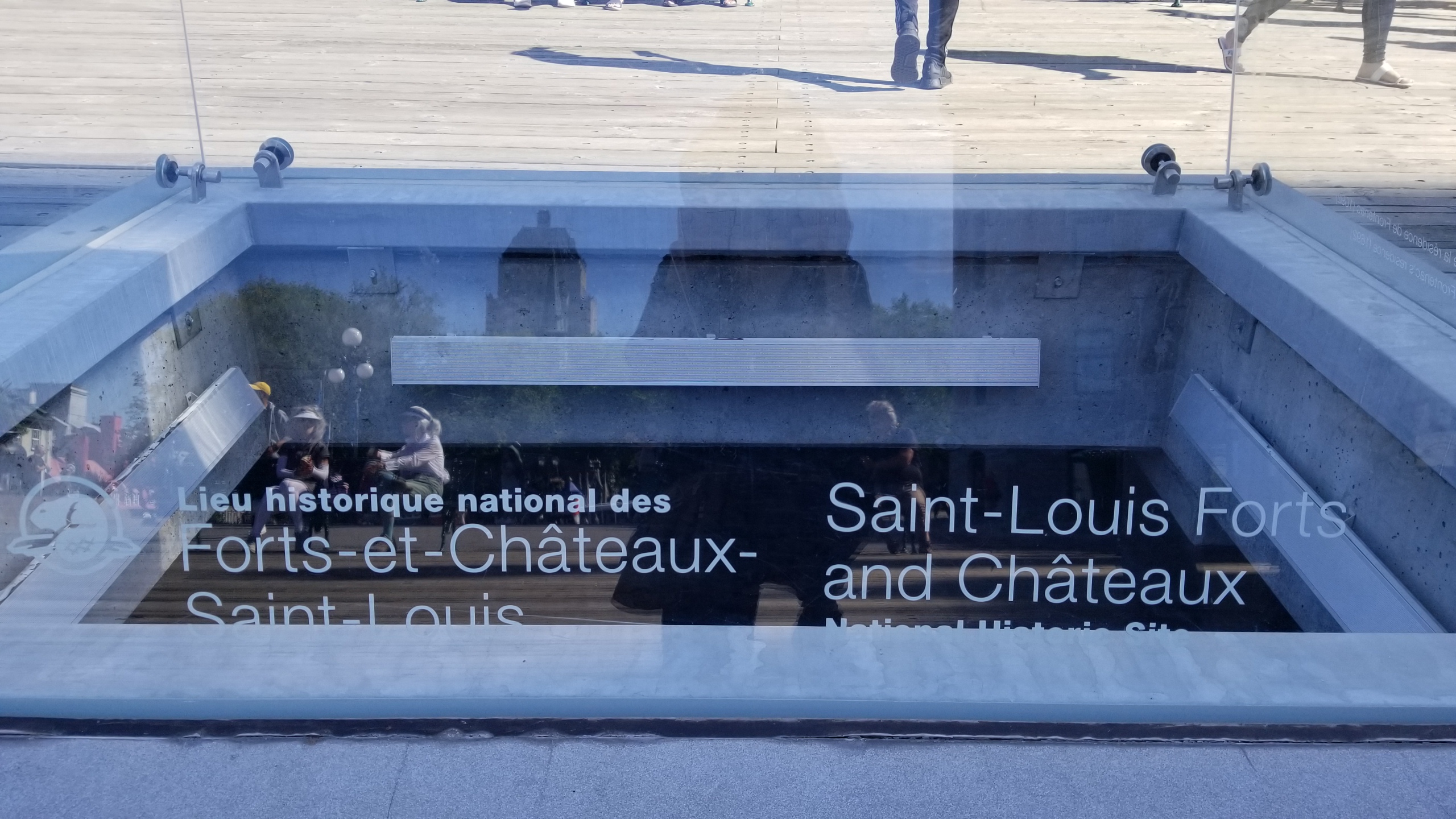더프린 테라스를 한가롭게 걷다보면 아래와 같은 유리 박스를 만난다. 이곳은 총독의 관저가 있던 지하 공간으로 국가 유적지로 지정되어 있다. Saint-Louis Forts and Chateaux (생-루이 요새와 성이라고 번역할 수 있겠다)
