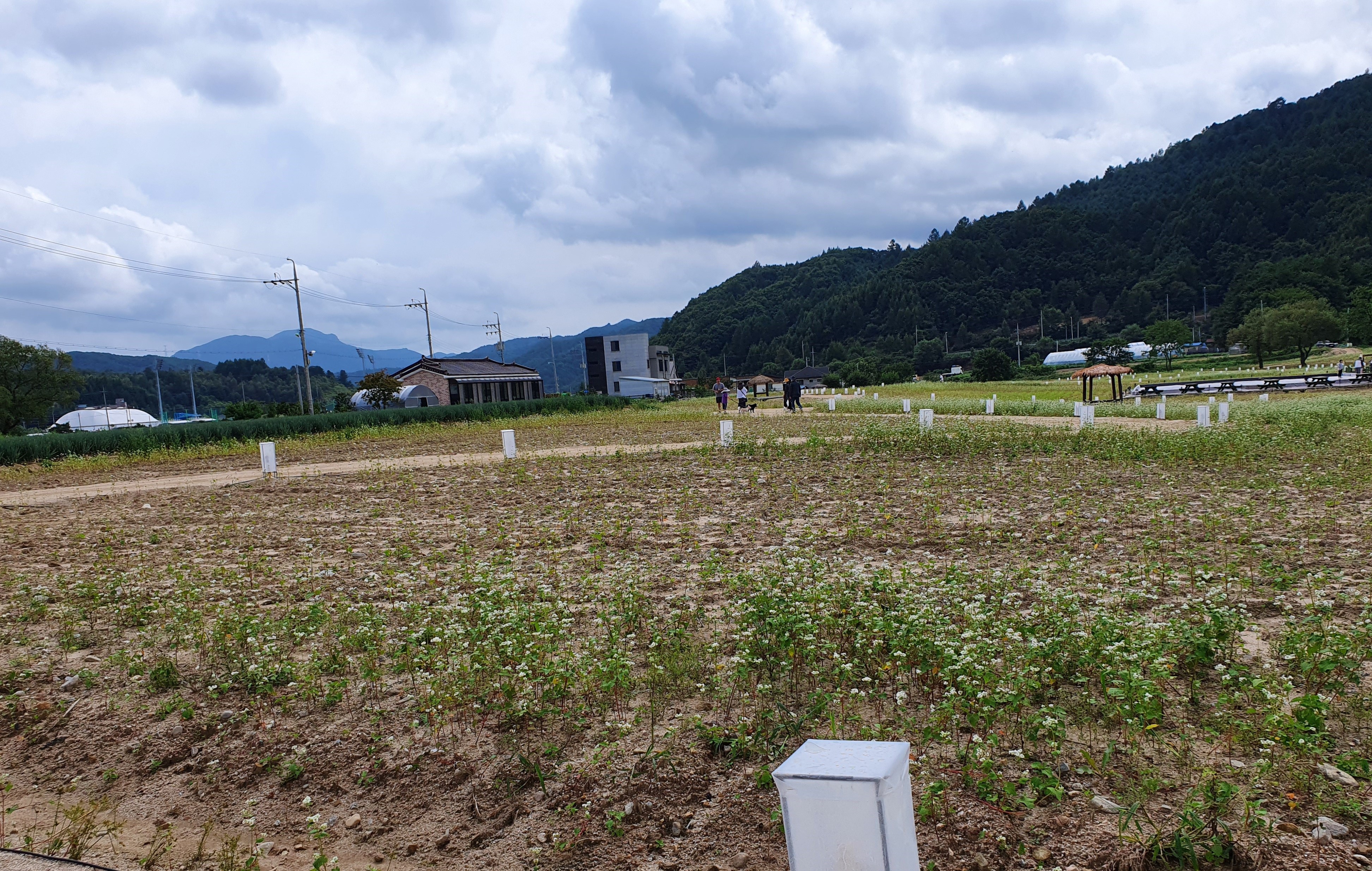입구의 흙이 드러난 황량한 밭과는 다르게 제법 하얀 메밀꽃이 피어난~ 소금을 뿌린 듯 까지는 아니지만~